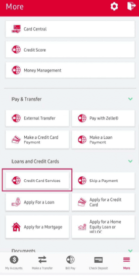 2. Search for Loans and Credit Cards on the top ribbon. Select Credit Card Services.