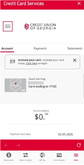 Members can perform a balance transfer through online banking using a computer or through the Credit Union of Georgia mobile app.